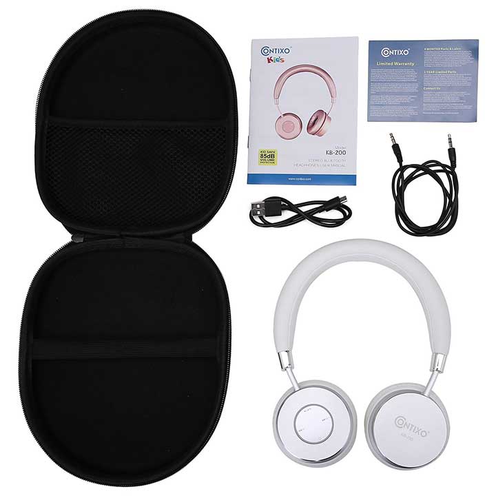 Contixo Premium Kids Headphones Volume Limit 85d Bluetooth Wireless Over Ear Microphone White KB200WT