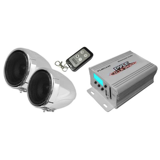 100 Watt Weatherproof Speaker and Amplifier System, with Dual 3” Speakers, USB/SD Card Readers, Aux (3.5mm) Input, Handlebar Mount, FM Radio (for Motorcycle, ATV, Snowmobile, Scooter, Boat, Waverunner, Jetski, etc.) (PLMCA40)