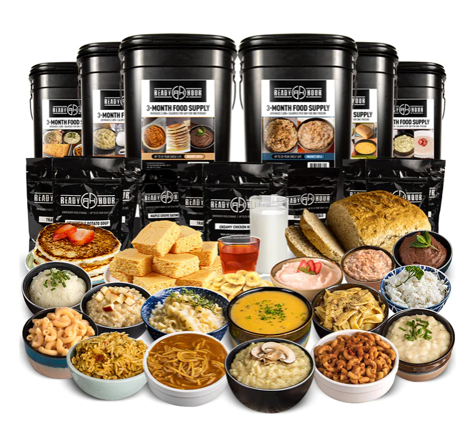 *The kit should be kept in a dark, cool place with temperatures ranging from 55 to 70 degrees. Cooler is better with Ready Hour Foods; long-term heat can cause premature product expiration.