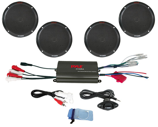 4 Channel 800 Watt Waterproof Micro Marine Amplifier & 6.5” Speaker System (RBPLMRKT4B)