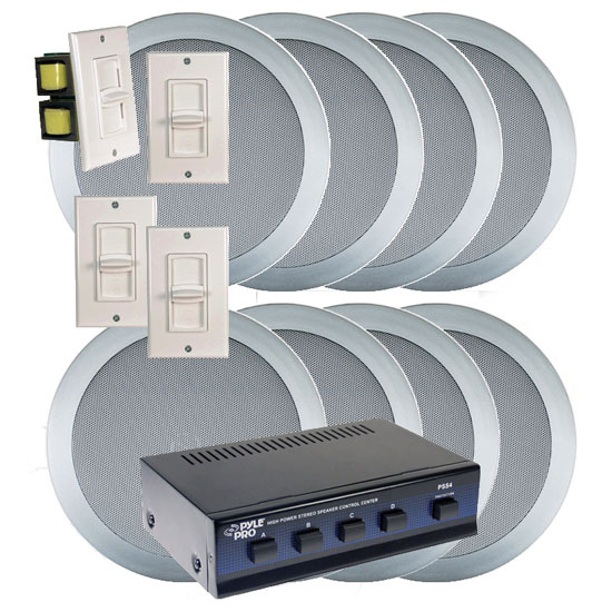 4 Room In-Ceiling Home Speaker System w/4 Volume Controls Knob (Silver) (KTHSP85SL)