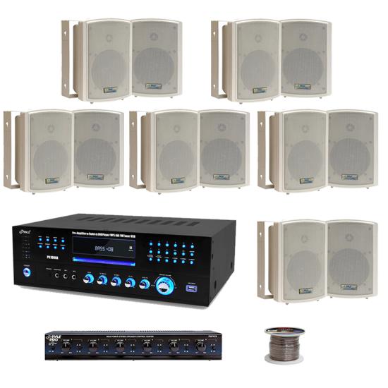 6 Room 5.25” Waterproof Wall Mount Speaker System w/6 Volume Controls Knob & Selector (KTHSP984527)