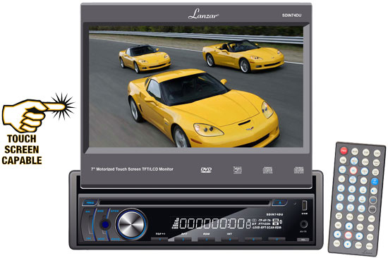 7” Motorized Touch Screen TFT/LCD Monitor With DVD/CD/MP3/MP4/AM/FM Player (RBSDIN74DU)