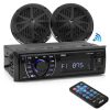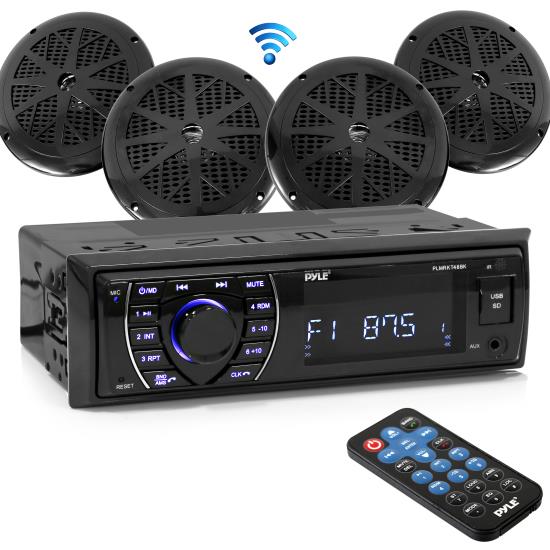 Bluetooth Marine Receiver Stereo & Speaker Kit, Hands-Free Calling, Wireless Streaming, MP3/USB/SD Readers, AM/FM Radio, (4) 6.5” Waterproof Speakers (Black) (PLMRKT48BK)