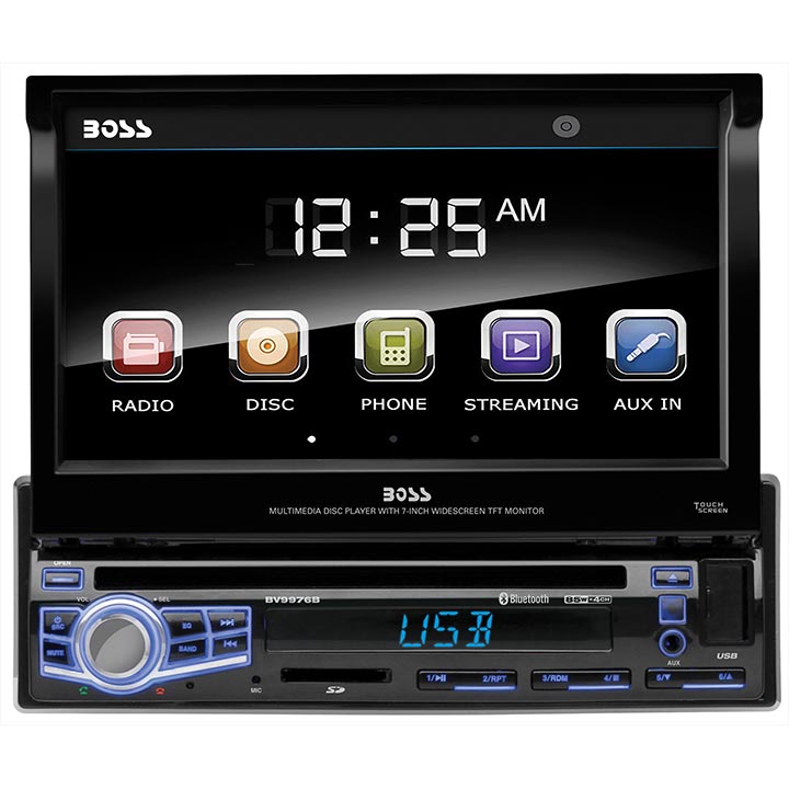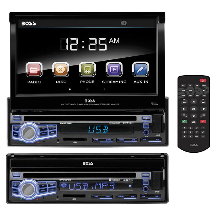 Boss 7″ Flip-Out Single Din ReceiverBluetooth DVD/CD USB/SD Front Aux input BV9976B
