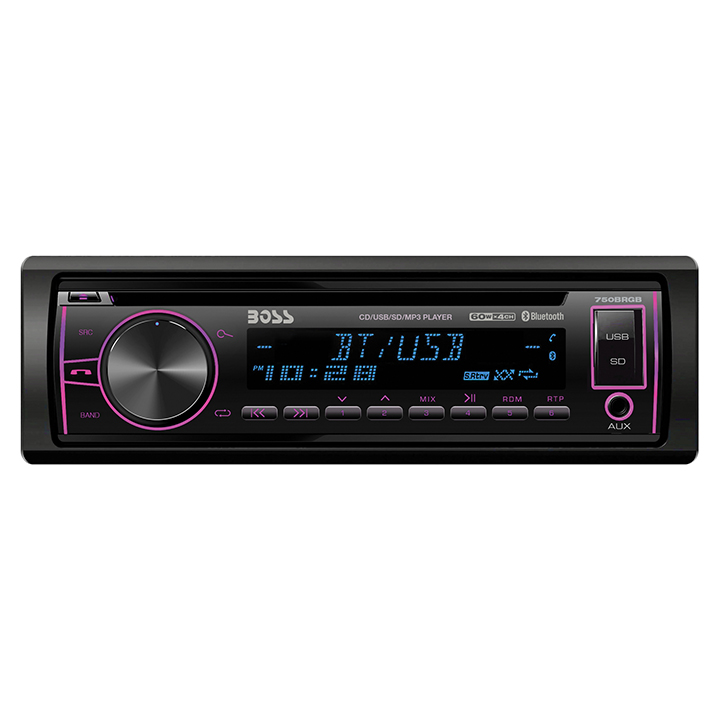 Boss Single Din CD/MP3 ReceiverMulti-Color Display Bluetooth USB Front Aux Remote 750BRGB