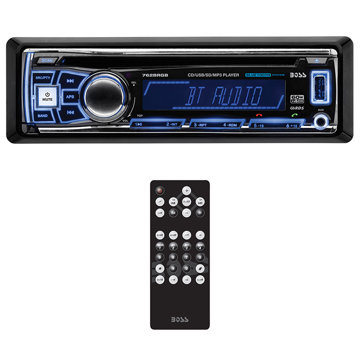 Boss Single Din MP3/CD/AM/FM ReceiverMulti-Color Display Bluetooth USB Front Aux Input Detachab 762BRGB