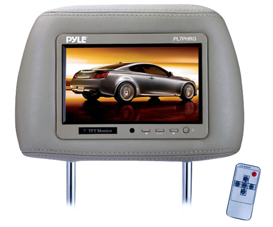 Complete Grey Vinyl Headrest w/Built-In 7” TFT-LCD Monitor (RBPL7PHRG)