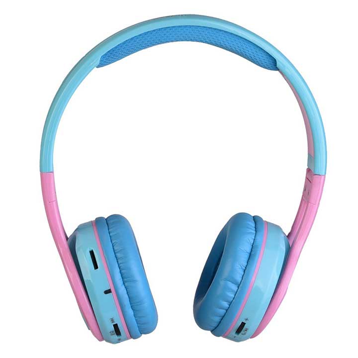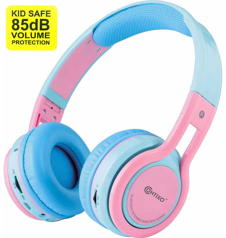 Contixo Kids 85DB Over Ear Foldable Wireless Bluetooth MicroPhone SDCard Music FMRadio Blue Pink KB2600BLPK