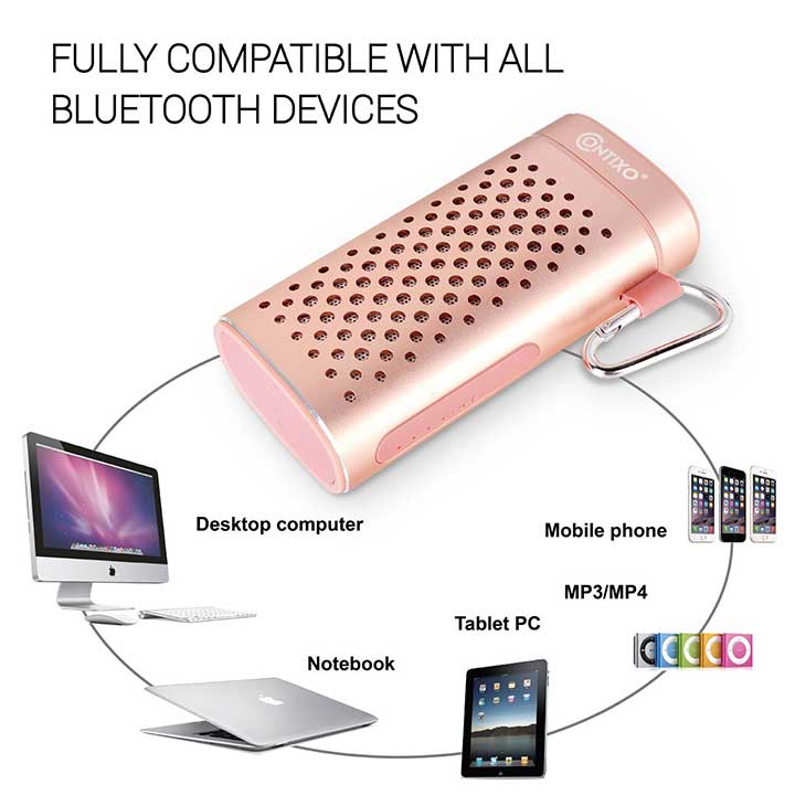 Contixo Samsung Battery Bluetooth Speaker For iphone 7 Beach Speaker 20 Hours Pink BT05PK