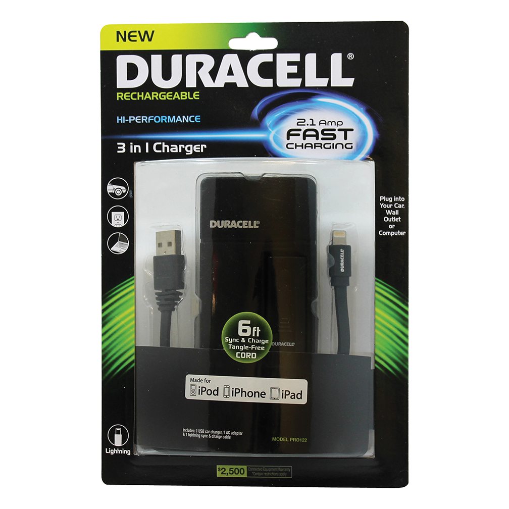 Duracell AC/Car 3 in 1 Lightening Charger (Black)