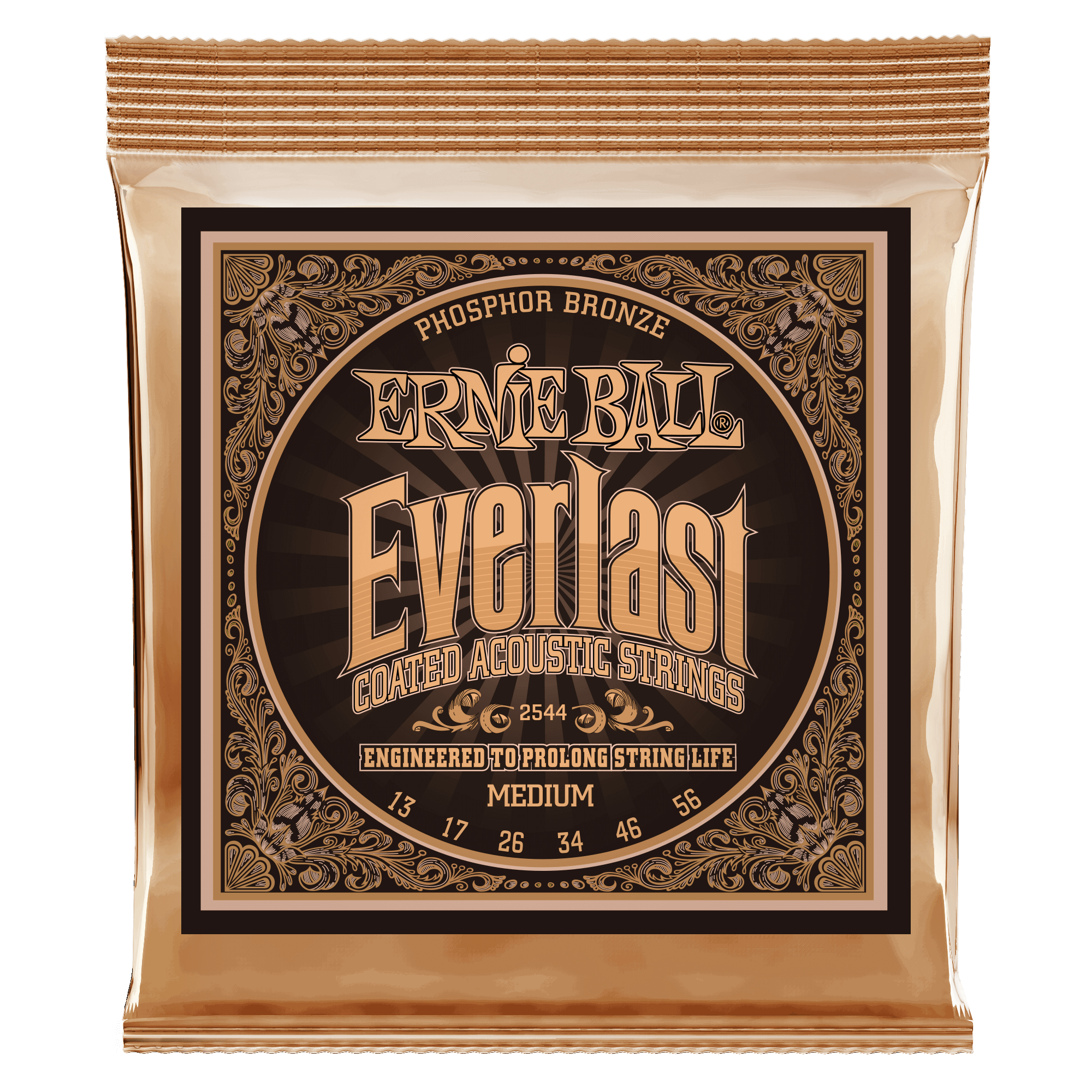 Ernie Ball Everlast Coated acoustic guitar strings use groundbreaking nanotechnology that repels unwanted moisture and oils that negatively impact your tone. Our proprietary treatment is applied to both the inner hex core and outer wrap wire to provide ultimate protection without compromising tone or feel. Made from 92% copper, 7.7% tin, 0.3% phosphorus wire wrapped around brass plated hex shaped steel core wire, Phosphor Bronze strings produce warm rich bass tones with clear bright trebles. Gauges .013, .017, .026, .034, .046, .056