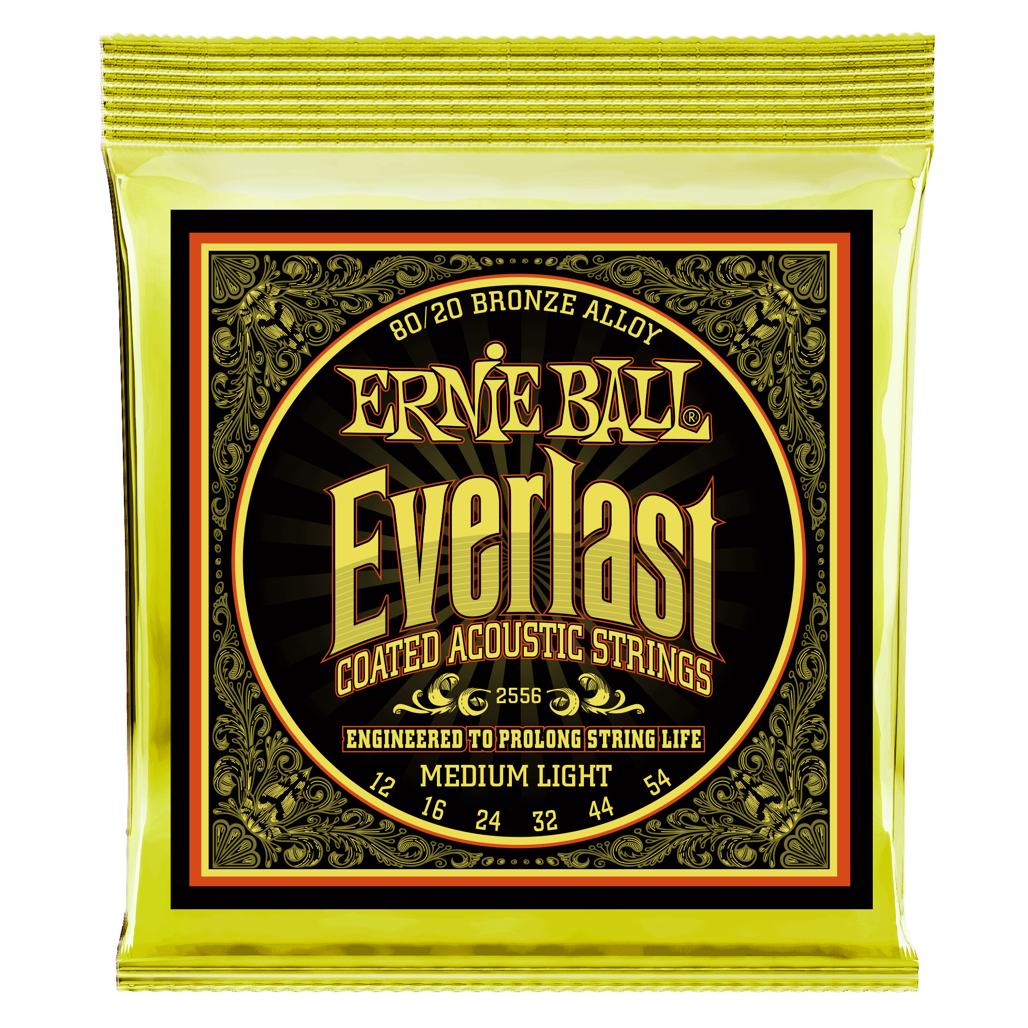 Ernie Ball Everlast Coated acoustic guitar strings use groundbreaking nanotechnology that repels unwanted moisture and oils that negatively impact your tone. Our proprietary treatment is applied to both the inner hex core and outer wrap wire to provide ultimate protection without compromising tone or feel. Made from 80% copper, 20% zinc wire wrapped around hex shaped brass plated steel core wire providing a crisp, ringing sound with pleasing overtones. Gauges .012, .016, .024, .032, .044, .054