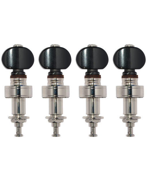 Golden Gate P-430 Deluxe Pancake Planet-Style Banjo Tuners – Nickel with Black Buttons – Set of 4