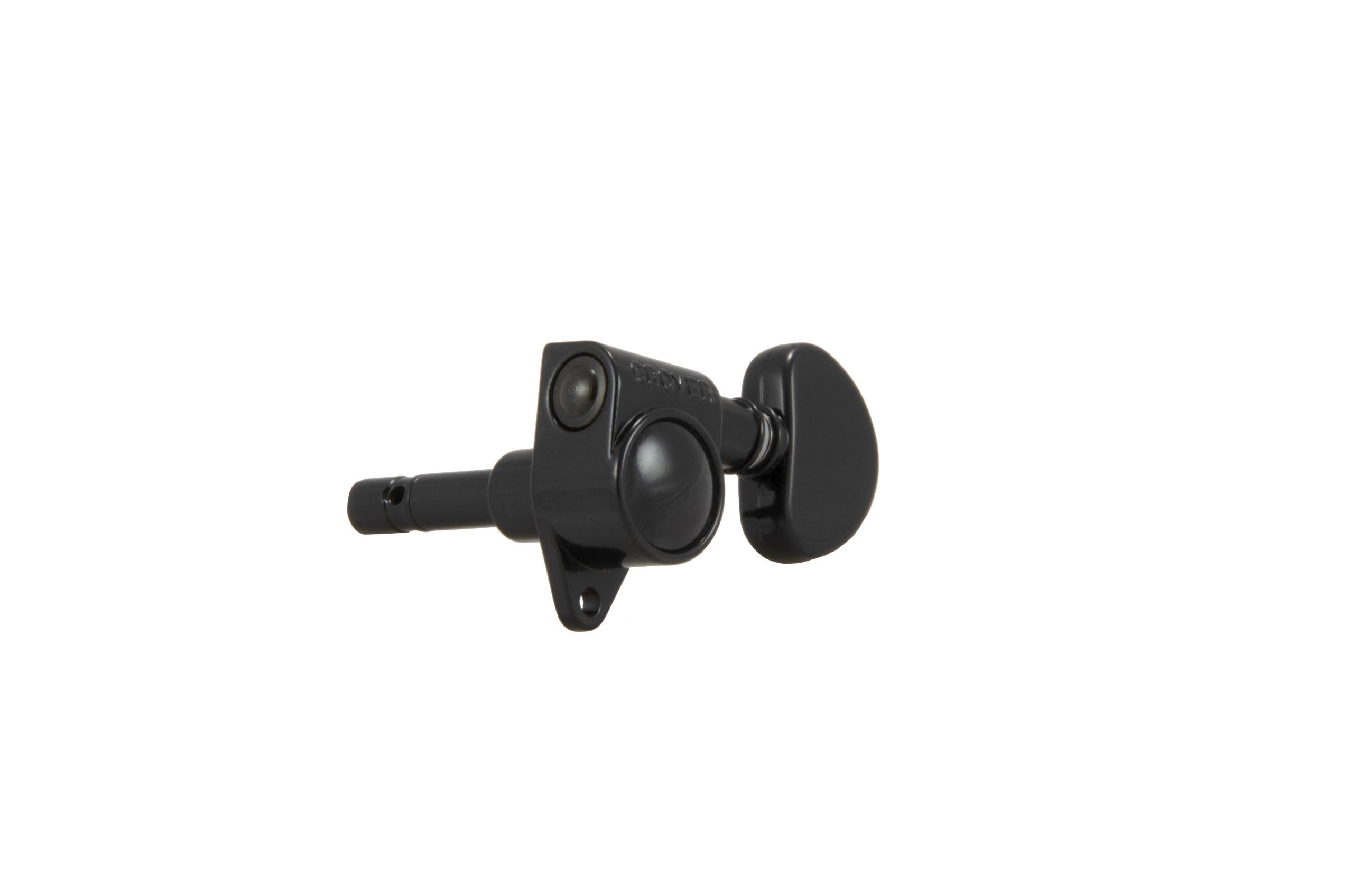 Grover Locking Rotomatics ® give you the ease of use provided by a standard tuner and the positive locking of our internal cam post. Simply insert the string through the string hole, pull to tension by hand and begin tuning. As you start to tune, only the locking cam in the string post turns. Once the string is locked, the string post begins to turn allowing you to bring the string to pitch. In less then one revolution of the string post, you will be in tune, to stay in tune. Gear ratio is 18:1.