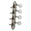 These new, professional model mandolin machine heads are the latest in technology. A specially designed, adjustable worm gear along with the die cast base maintains the center lines of the gear and worm to insure correct alignment for the finest tuning possible. The worm to gear ratio is 18:1.