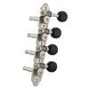 These new, professional model mandolin machine heads are the latest in technology. A specially designed, adjustable worm gear along with the die cast base maintains the center lines of the gear and worm to insure correct alignment for the finest tuning possible. The worm to gear ratio is 18:1.