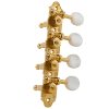 These new, professional model mandolin machine heads are the latest in technology. A specially designed, adjustable worm gear along with the die cast base maintains the center lines of the gear and worm to insure correct alignment for the finest tuning possible. The worm to gear ratio is 18:1.