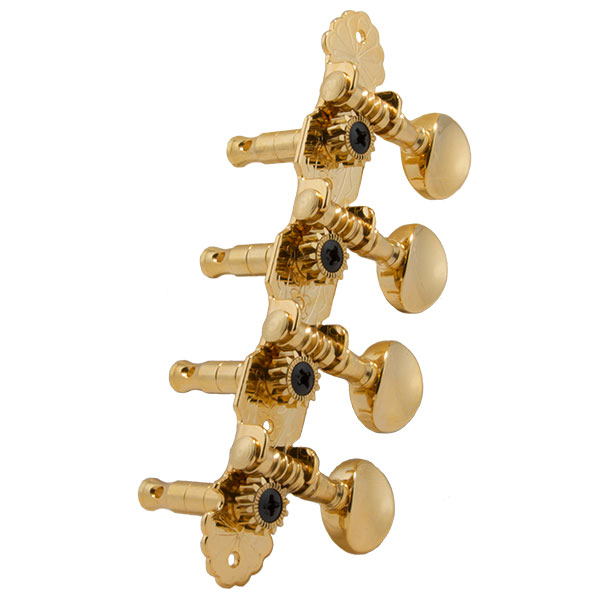 Precise engineering assures sure, smooth tuning. One piece back plates. Brass gears mean perfect meshing. Heavily plated. Screws and bushings included. With a 14:1 gear ratio.