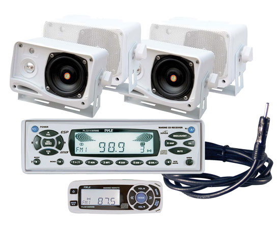 In-Dash Marine CD/MP3 Player/Weather Band w/Four Weather Proof Mini Box Speakers (KTMR1624NT)