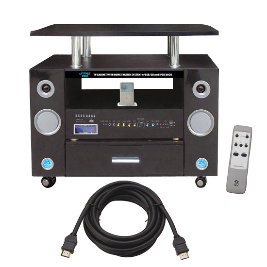 LCD TV Cabinet Dual Channel Home Theater System W/ iPod Docking Station & USB Fits Up to 32” Monitor + 6ft High Definition HDMI Cable (KTHPK276)