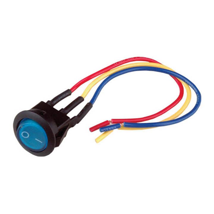 Nippon mini rocker switch with 6″ lead wire blue color LED ISECIR1216BLU
