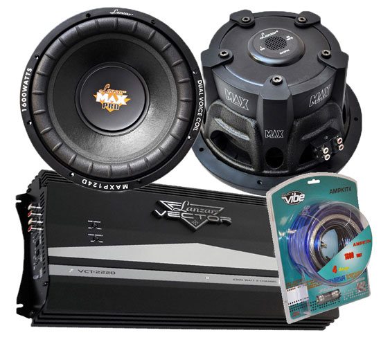 Pair of Lanzar MAXP124D 12″ 1600W Subwoofers + 2350W High Power Amplifier + 1800W AMP Wiring KIT (KTVCTMX12)
