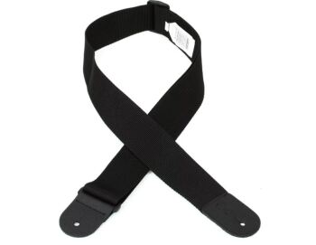 Perfektion Guitar Strap. Woven polypropylene guitar strap – Black with leather ends.