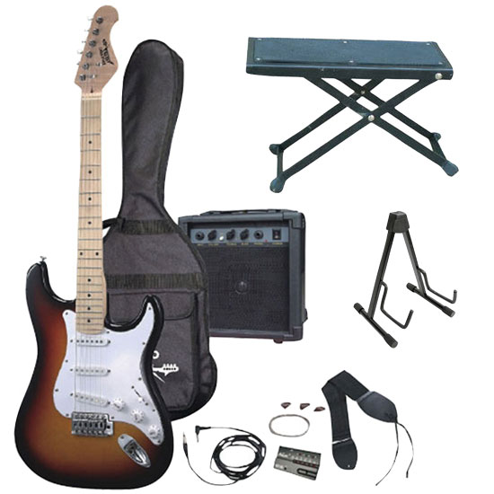 Professional Full Size Electric 6 String Guitar Package w/ Amplifier + Folding Guitar Stand + Guitar Foot Stool. (KTMUPK04)