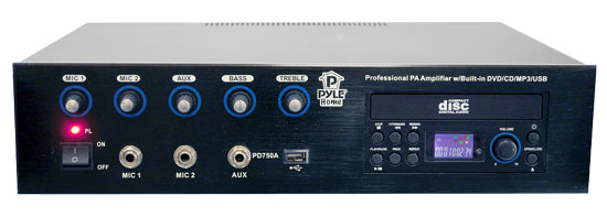 Professional PA Amplifier w/Bulit In DVD/CD/MP3/USB/70v output (PD750A)