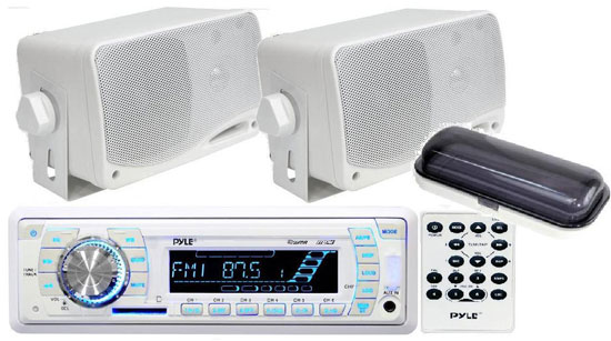 Pyle In-Dash Marine AM/FM USB/SD Stereo Player Receiver Aux-In for iPod/MP3 W/ Stereo Cover + 2 x 3.5″ 200W Speakers & Remote (KTMRGS39)