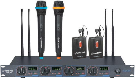 Rack Mount Professional 4 Mic Wireless UHF Microphone System With 2 Lavalier and 2 Handheld Microphone (RBPDWM7300)