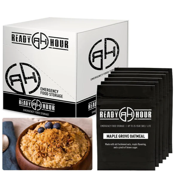 Not only is it tasty, but it is also easy to make. The great news is that Ready Hour Maple Grove Oatmeal lasts up to 25 years unopened,* and one year once you open the pack. You will never have to worry about not having emergency food when you need it.
