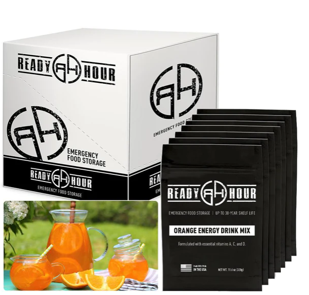 Ready Hour Orange Energy Drink Mix is perfect in a crisis. It lasts up to 30 years unopened, and one year once you open the pack. Store it in a cool, dry location where temperatures stay between 55 and 75 degrees for optimal longevity.