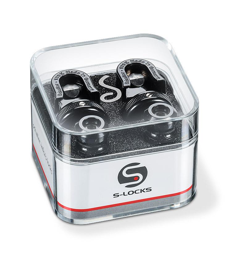 Set of 2 genuine Schaller S-Locks! Fits all existing strap buttons incl. Gibson for perfect replacement without adjustments on existing holes and screws, hardened steel and more than double thickness of the strap button guarantees maximum security against breakage, including high-grade felt washers for ultimate protection of guitar’s finish. Lock extended thread length for holding straps of up to 6 mm thickness, new designed slanted locking bolt in stainless steel for permanent precision, reliable performance and wear-free finish, new designed pull-up ball for easy-grip lock and release. New Lock-Wheel with unique 3-Step security function.