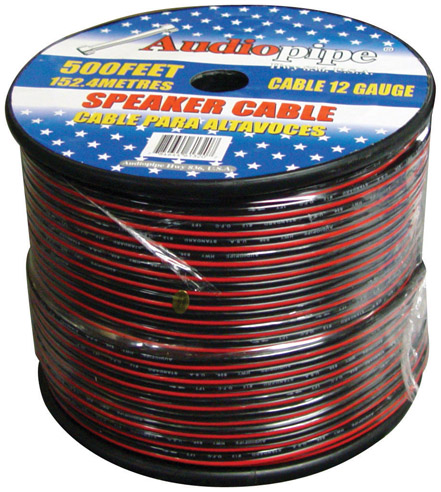 SPEAKER CABLE 12GA. 500′ AUDIOPIPE;RED + BLACK