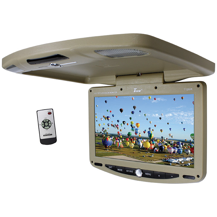 Tview 12″ TFT Flip Down Monitor IR Trans Remote Tan T126IRTAN