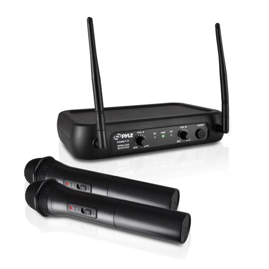 VHF Fixed Frequency Wireless Microphone System, Adjustable Volume Controls, Includes (2) Handheld Mics (PDWM2135)