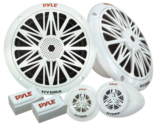 Water Resistant Marine Component Speaker System, Dual 5.25” Speakers, Dual Tweeters, Dual Electronic Crossovers (Sold as Kit) (PLMR5K)