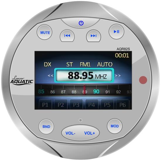 Waterproof Bluetooth Marine Digital Media Receiver Stereo Radio (USB/MP3, AUX, Video Inputs) AM/FM Radio, Round/Circle, Silver (AQR82S)