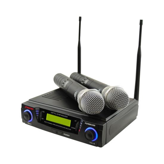 Wireless Professional UHF Dual Channel Microphone System With 2 Microphones and Adjustable frequency (PDWM3300)
